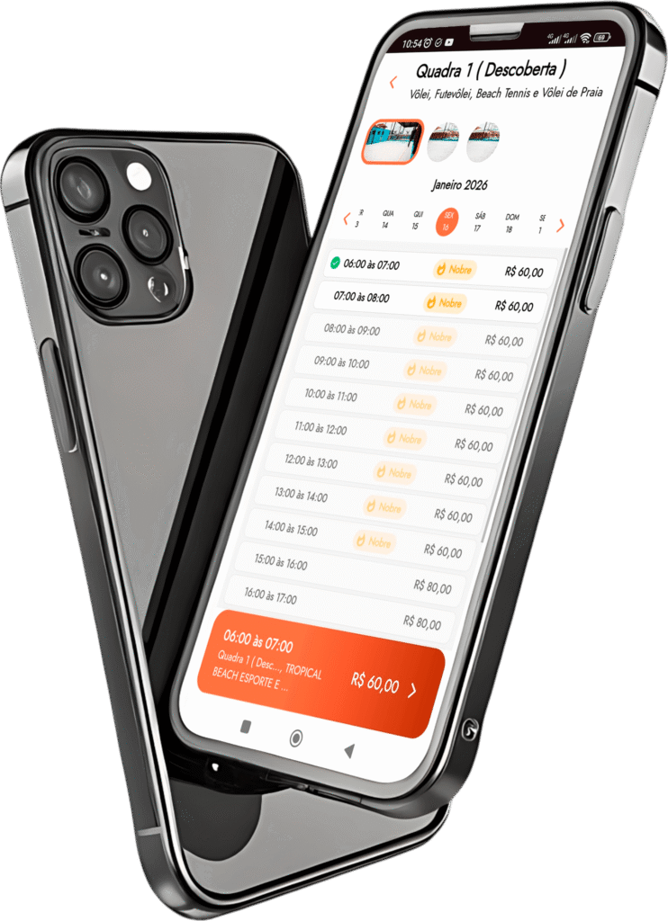 Nossa plataforma de agendamentos é 100% online e permite que você escolha a quadra, o esporte e o horário em poucos cliques.